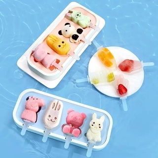 Khuôn làm kem silicon cao cấp, hình thú dễ thương, có nắp đậy và que nhựa đi kèm