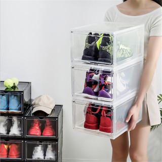 Hộp Đựng Giày Xịn Trong Đen Nhựa Cứng Cao Cấp Size Lớn, Cửa Nam Châm Lắp Ráp Tiện Lợi ( Loại Xịn)