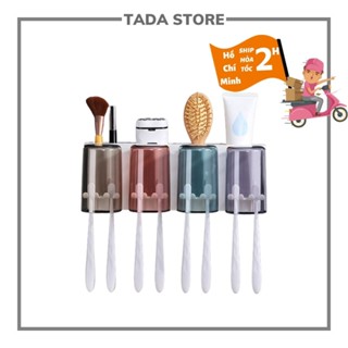 Bộ Nhả Kem Đánh Răng 4 Cốc OENON, Kệ Để Đồ Phòng Tắm Đa Năng Dán Tường Lực Hút Từ Tính Tặng Kèm Cốc