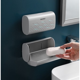 Hộp Đựng Xà Phòng Kín Dán Tường, Khay Để Xà Bông Có Nắp Lật Oenon Có Khay Thoát Nước