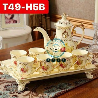 BỘ ẤM TRÀ KÈM KHAY TRẮNG PHONG CÁCH KIỂU ÂU SANG TRỌNG CAO CẤP 609
