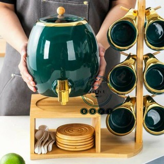 Bộ bình cao cấp có vòi rót nước 3l kèm 6 cốc sứ, thìa, lót ly và giá gỗ