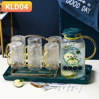 Bình thuỷ tinh chịu nhiệt sần quai vàng | Bộ bình cốc thủy tinh sần Borosilicate chịu nhiệt, chịu lực cao cấp 1.6L 1.8L