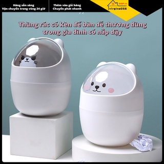 Có thể bán buôn Thùng rác để bàn mini Hình thức dễ thương Bàn mở lớn nhựa Có thể tháo rời Rổ đựng có nắp đậy Virgina056 Hàng giao ngay