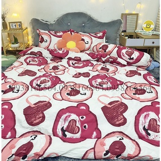 BỘ CHĂN GA GỐI COTTON POLY NHẬP KHẨU 100% ( CHĂN ĐÃ TRẦN BÔNG) HỌA TIẾT THỎ DÂU - ĐỦ KÍCH THƯỚC