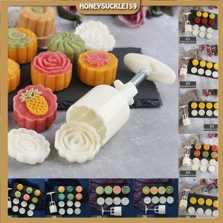 Bộ Khuôn Nhấn Lò Xo 3D Làm Bánh Trung Thu 4 Mặt Hoa 50g Nhiều Mẫu Đẹp