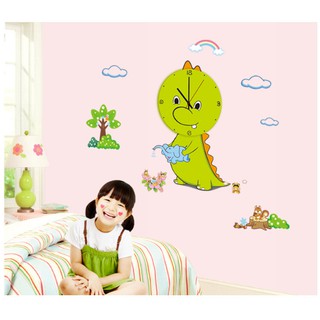 Decal Trang Trí Tường Kèm Đồng Hồ Dán Tường KHỦNG LONG VÀNG ( Cao Cấp )