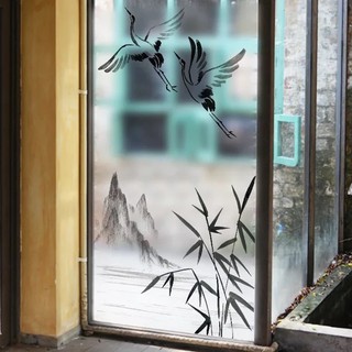 Decal trang trí kính cao cấp mẫu phong cảnh Sơn Thủy và 2 Con Cò (60cm x 116cm)