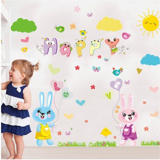 Decal trang trí tường - Thỏ Line vui vẻ Happy