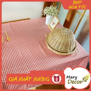 Khăn trải bàn caro đỏ viền ren (đủ kích thước) - Quà tặng - A03