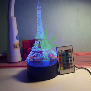 Đèn ngủ, Đèn trang trí Led 3D, Đèn ngủ 16 màu mini có điều khiển Tháp Eiffel