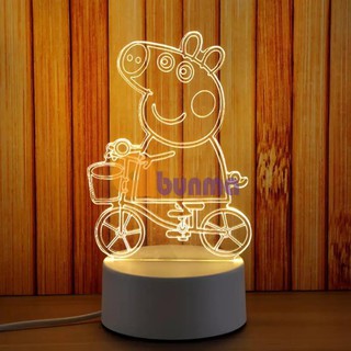 Đèn ngủ, đèn trang trí, Led 3D Heo Peppa đi xe đạp