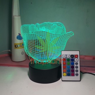 Đèn ngủ, Đèn trang trí Led 3D, Đèn ngủ 16 màu mini có điều khiển Bông Hồng