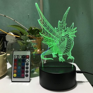 Đèn ngủ, Đèn trang trí Led 3D, Đèn ngủ 16 màu mini có điều khiển hình con Rồng