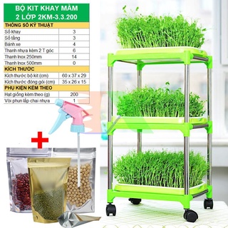 Bộ kit Khay trồng rau mầm thủy canh chuyên dụng TKM-3.3, Khay, Giá đỡ, Vòi xịt, Hạt giống