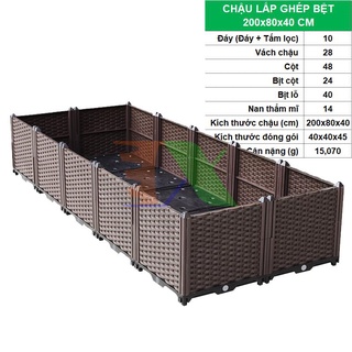 Chậu lắp ghép CLG-40, Chậu lắp ráp thông minh trồng Rau Hoa, ( Bệt kích thước : 200 x 80 x 40cm)
