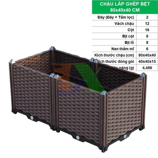 Chậu lắp ghép CLG-40, Chậu lắp ráp thông minh trồng Rau Hoa (Bệt kích thước : 80 x 40 x40 cm)
