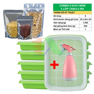 Combo Khay trồng Rau mầm Thủy canh 2 lớp CKM-6.2.500, Kèm Hạt giống, Bình xịt