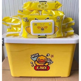Thùng 10 gói khăn giấy ướt vịt vàng(sẵn hàng) + tặng kèm thùng nhựa tiện dụng siêu đán