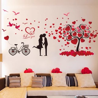Decal dán tường cặp đôi tình nhân cây trái tim trang trí phòng cưới