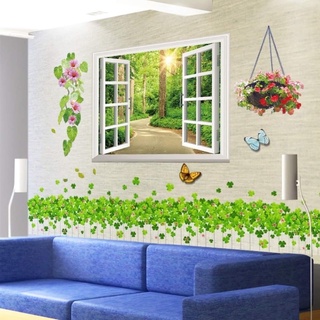Decal dán tường cửa sổ xanh chân cỏ may mắn.