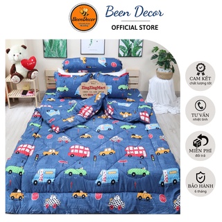 [ Chăn Phao ] Bộ 5 Món Chăn Phao Ga Gối Mẫu Ô tô Poly COTTON Chăn Bông Trần [ Chăn phao + Ga chun + 2 Vỏ gối + Vỏ ôm ]