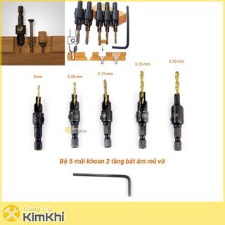 Bộ 5 mũi khoan 2 tầng chỉnh cữ bắt âm mũ vít 2-3.55mm khoan gỗ nhôm đuôi chuôi lục giác