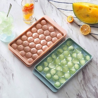 Khuôn Thạch Tròn, Khay Đá Bi 33 Viên Có Nắp Đậy - Nhựa Màu Pastel - Làm Đá Viên, Đỏ Kem, Thạch