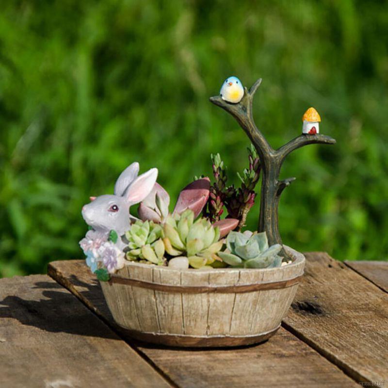 Mô hình chậu cây và chú thỏ trang trí kiểu phong cảnh dễ thương