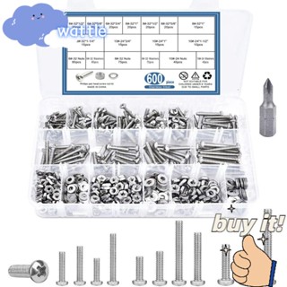 WATTLE Bộ 600 Ốc Vít Nhiều Loại Bằng Thép Không Gỉ 304 #6-32#8-32#10Bu Lông Và Bu Lông 24 Đai Ốc Và Bu Lông