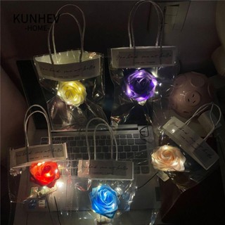KUNHEV Đèn LED Hình Hoa Hồng Phát Sáng Ấm Áp Lãng Mạn Kèm Túi Đựng