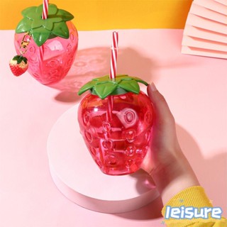 Bình Nước Nhựa 500ml Kèm Ống Hút Họa Tiết Dâu Tây Dễ Thương