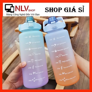 Bình Đựng Nước 2 Lít Có Chia Vạch Theo Giờ , Màu Cực Đẹp (Kèm Miếng Dán )