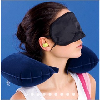 Combo gối hơi du lịch, miếng che mắt và 2 nút bịt tai khi ngủ