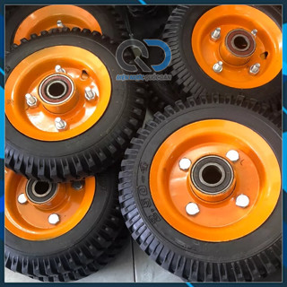 Bánh Xe Đẩy Hàng (Kéo Hàng) Cao Su Đặc Mâm Đỏ Đường Kính 20cm, Có Bạc Đạn
