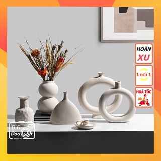 Bình Sứ Cắm Hoa Trắng TiTi Decor Lọ Gốm Cắm Hoa Trang Trí Cửa Hàng Phong Cách Hàn Quốc Minimalism