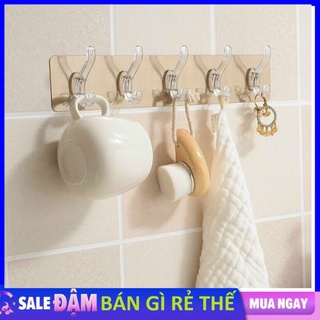 Vỉ 6 móc dán tường trong suốt treo đồ chịu lực siêu chắc chắn nthinhuy01, mắc áo dán tường 6 móc tiện dụng, bền bỉ