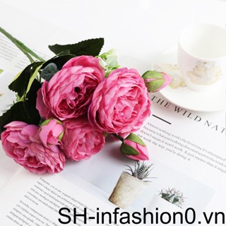 Bó Hoa Mẫu Đơn Nhân Tạo Bằng Lụa Cho Trang Trí Bàn Làm Việc