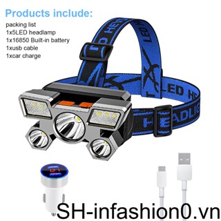 Đèn Pha 5 Bóng LED IPX4 Đội Đầu Chống Nước Chống Trượt Có Thể Sạc Lại Cho Người Lớn Trẻ Em Đi Săn Ban Đêm