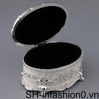 Hộp Đựng Trang Sức Bằng Kim Loại Hình Oval Màu Trắng Phong Cách Vintage