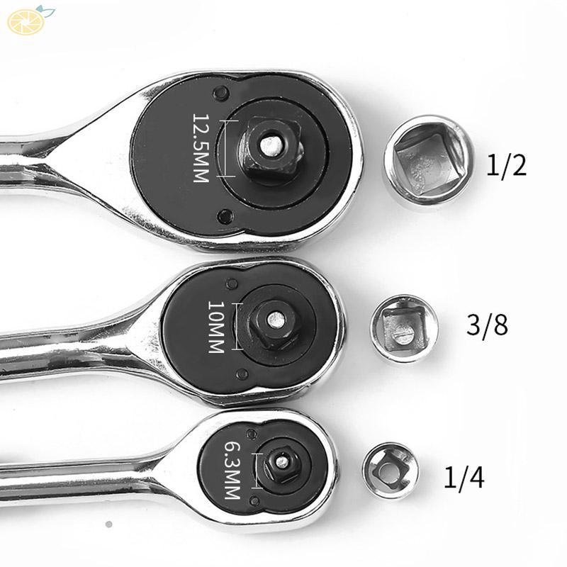 Cờ lê hai đầu tay cầm màu đen và bạc 107mm ren 1/4" đảo chiều nhanh