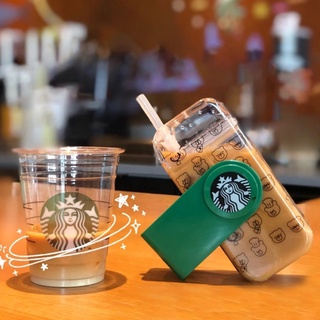 Bình Đựng Nước Starbucks 290ml Bằng Nhựa Trong Suốt Thiết Kế Xoay Kèm Ống Hút Tiện Dụng