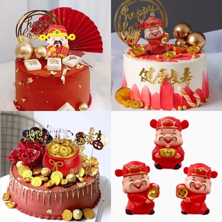 Grandpa and Grandma Phụ Kiện Trang Trí Bánh Kem Tráng Miệng In Hình Chú Mèo May Mắn Phong Cách Trung Hoa