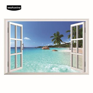 Miếng dán tường trang trí hình phong cảnh bãi biển tươi mới