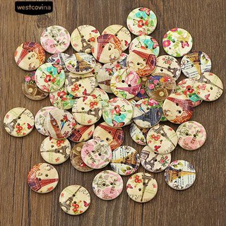 Set 50 nút gỗ 2 lỗ họa tiết tháp Eiffel chuyên dụng cho thợ làm đồ thủ công