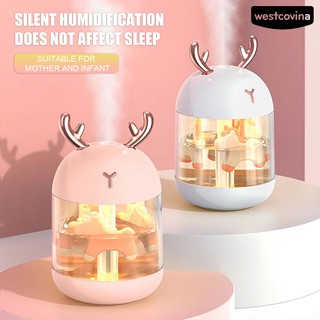 Máy tạo độ ẩm không khí kiểu tai thỏ/ sừng tuần lộc dễ thương kèm đèn LED tiện lợi