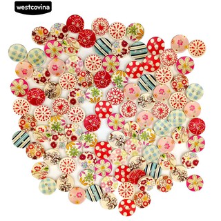 Set 100 hạt gỗ tròn 15mm họa tiết đa dạng tự làm may vá thủ công