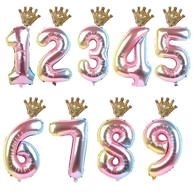 Bong bóng hình số đội vương miện màu vàng xinh xắn