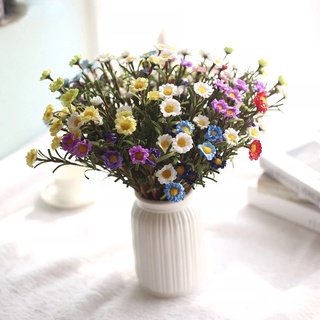 1 bó 8 bông hoa cúc nhân tạo bằng PE màu trắng vàng trang trí bàn làm việc