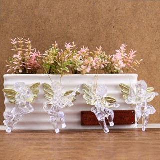 Set 4 Phụ Kiện Trang Trí Cây Thông Giáng Sinh Trong Suốt Hình Thiên Thần Có Cánh Vàng